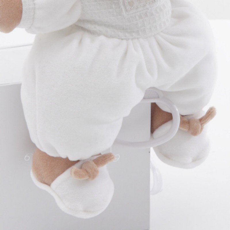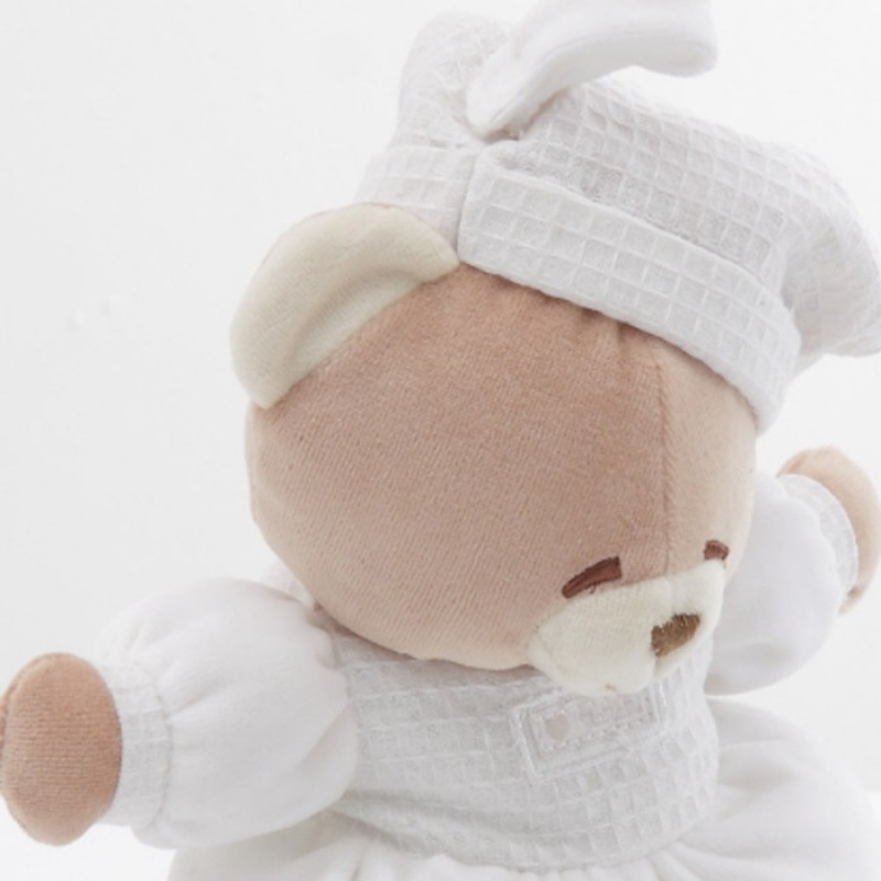 Il carillon della linea Tato è un peluche di morbida ciniglia vestito in tessuto piquet.