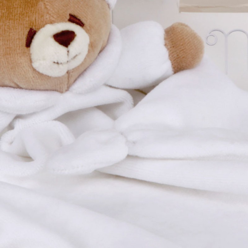 Il Fazzoletto denti della linea Tato è un peluche morbido unito a un fazzoletto soffice ideale per i primi mesi di vita per lo spasimo che hanno i bambini nella crescita dei dentini.