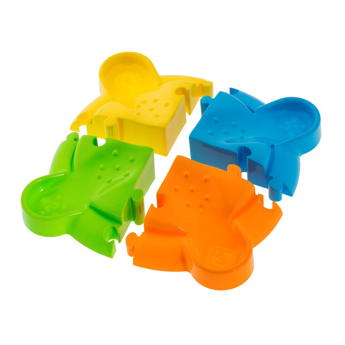 Tre giochi in uno: impila le sei tazze colorate, componi il puzzle e fai rotolare le palline all’interno della torre fino alla base.