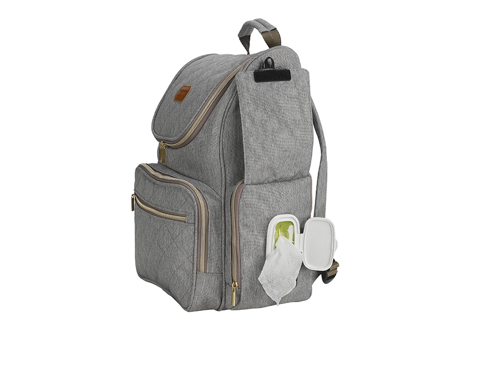 Utilissima tasca laterale con apertura porta fazzoletti o salviettine detergenti (NON INCLUSI), con patella richiudibile.